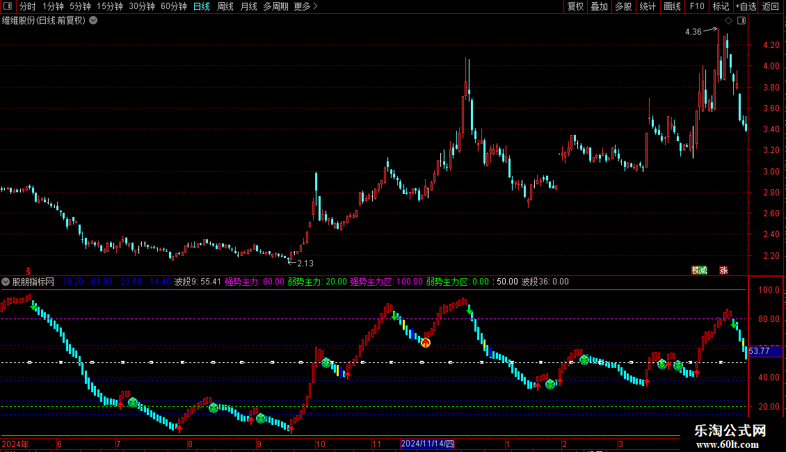 很好:=IF(波段19&&波段3,80,100),COLORGREEN,LINETHICK2;