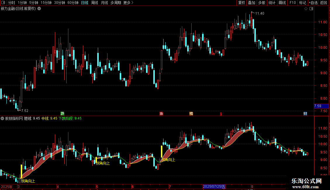 下跌阶段:IF( VAR2=VAR7, VAR7,DRAWNULL),COLORGREEN;