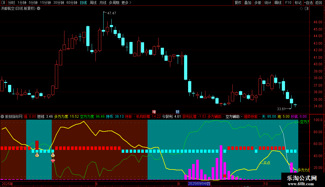 弱:STICKLINE(空方力度1>多方力度1,0,100,6.0,0)COLORLICYAN;
