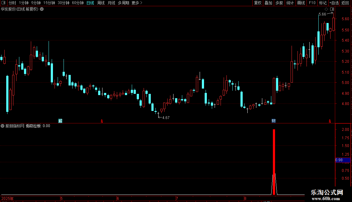 1.低吸拉板指标将低吸与拉板信号融合是量能与走势共同选择,涨幅达到5%的时候会出信号,所以盘中预警使用更合适。