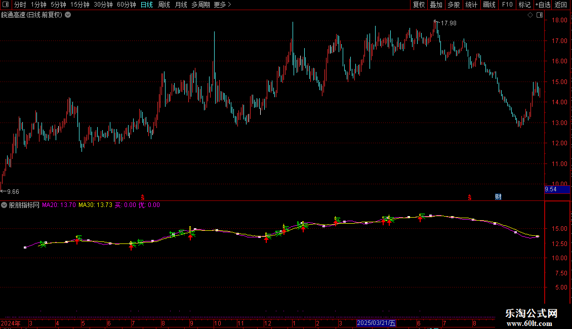 优:买 AND MA5>REF(MA5,1),COLORYELLOW,POINTDOT,LINETHICK0;