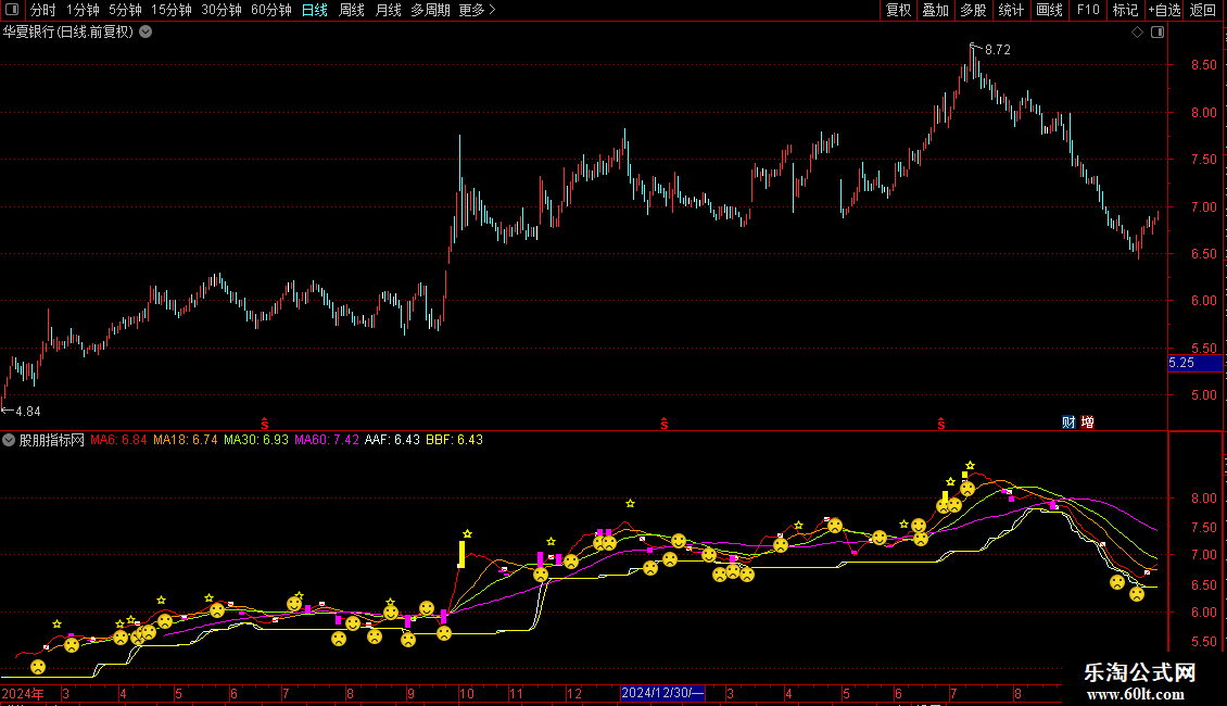 DRAWICON(CROSS(操盘线,V5) AND MA6>REF(MA6,1),L,4);