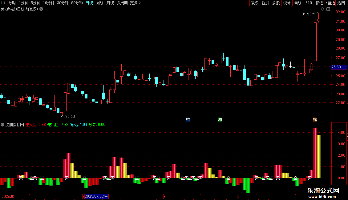 流入亿:IF(CLOSE>OPEN,VAR1*(HIGH-LOW),IF(CLOSE<OPEN,VAR1*((HIGH-OPEN)+(CLOSE-LOW)),AMOUNT/2))/100000000,COLORRED,NODRAW;