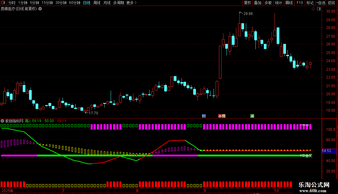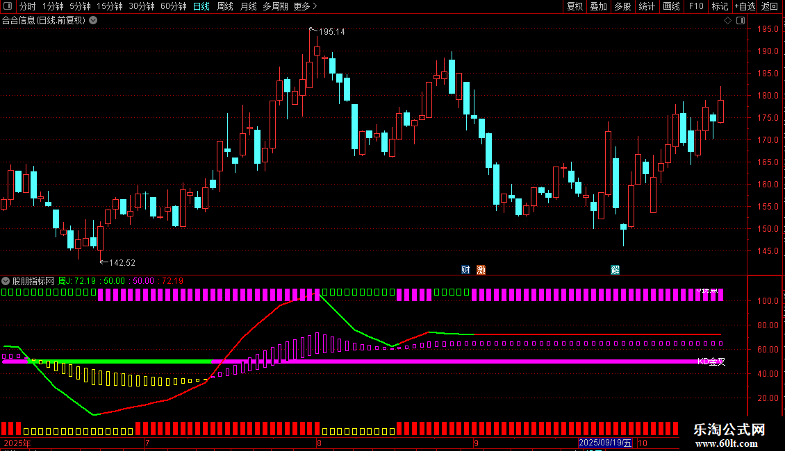 周J:MA("KDJ.J#WEEK"(9,3,3) ,5),COLOR00FF00,LINETHICK2;