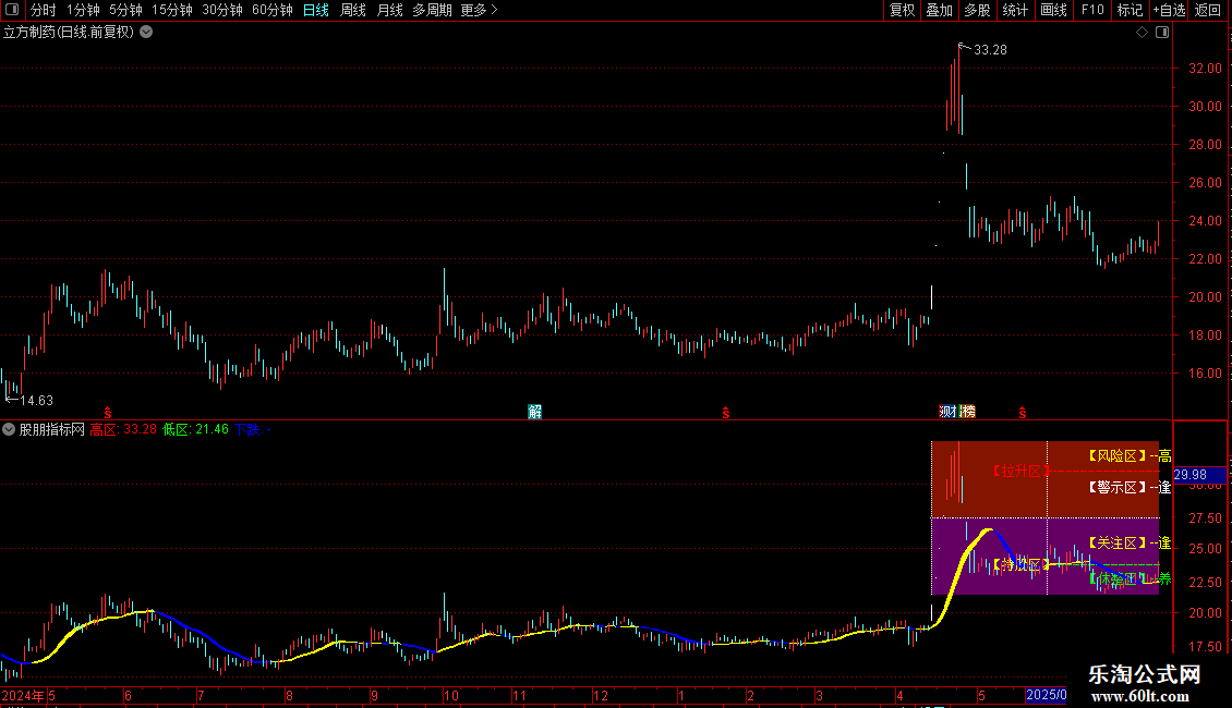 DRAWTEXT(CURRBARSCOUNT=N11/4+5,GD-KJ*0.09,'【风险区】--高抛避险'),COLOR00FFFF;