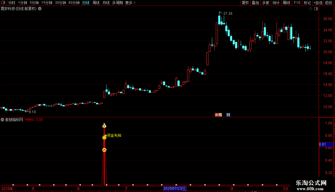 DRAWTEXT(HMAX,0.8, '★资金先知'),COLORYELLOW  LINETHICK6;