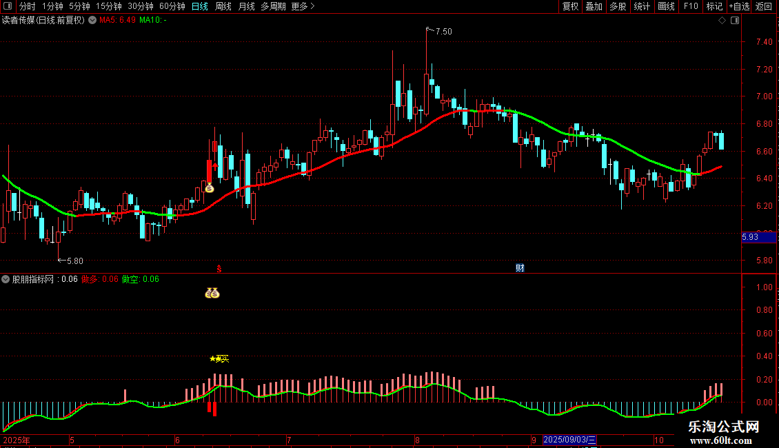 ◦ 副图共振:当副图中的红色量能柱出现,同时伴随钱袋子图标,与主图信号形成共振,这是趋势启动的进一步加强信号。
