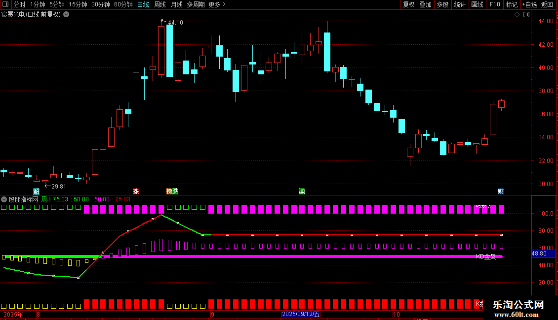 周J:MA("KDJ.J#WEEK"(9,3,3) ,5),COLOR00FF00,LINETHICK2;