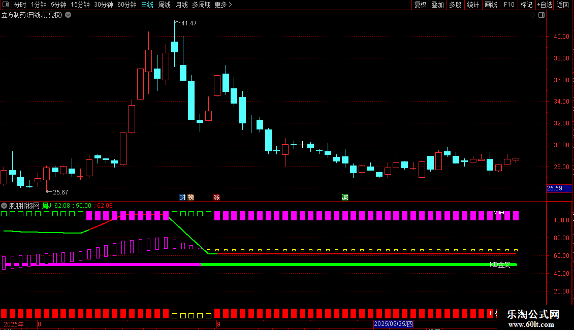 DRAWTEXT(CURRBARSCOUNT=4,50,'KD金叉'),COLORFFFFFF;