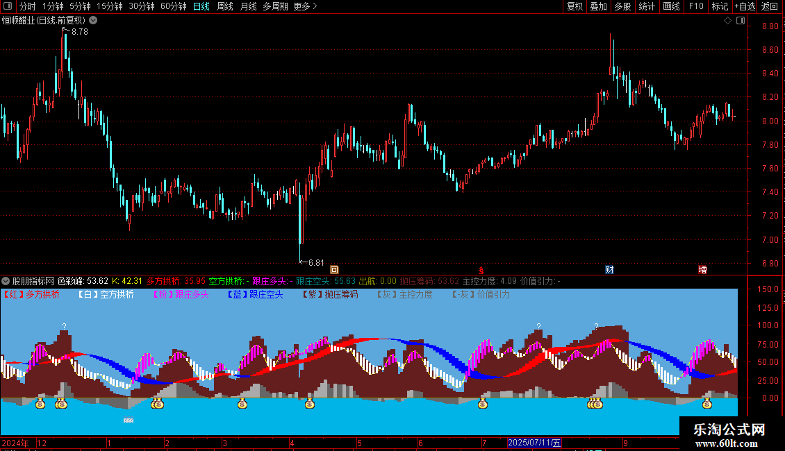 跟庄多头:IF(K>=D,D,DRAWNULL),NODRAW,COLORMAGENTA;