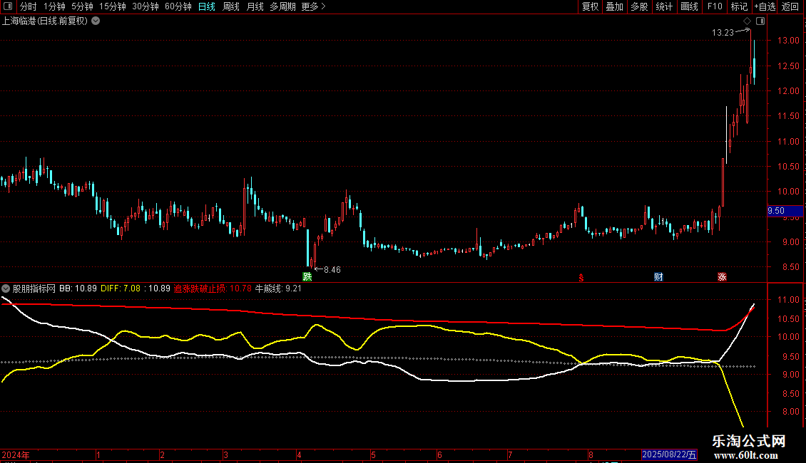 四,注意红线,如果三点交于一点,碰巧站上红线,此时强势大牛 跌破红线是一定要止损的,跌破红线实际上股价已经回落一些了。