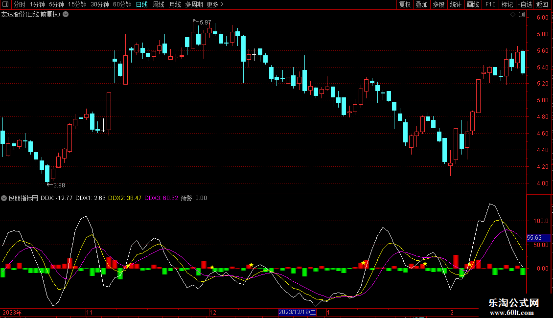 天赋值:统计5日中满足DDX>0的天数,画红色