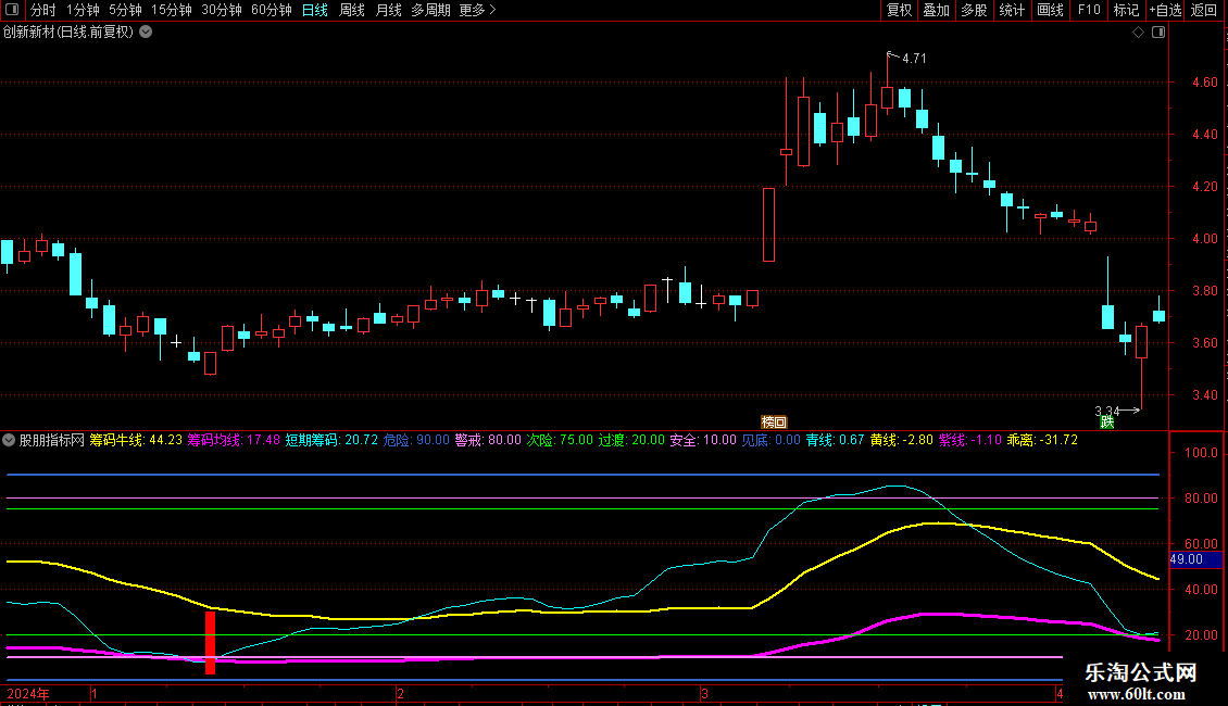 紫线:筹码均线-REF(筹码均线,1),NODRAW,COLORMAGENTA;