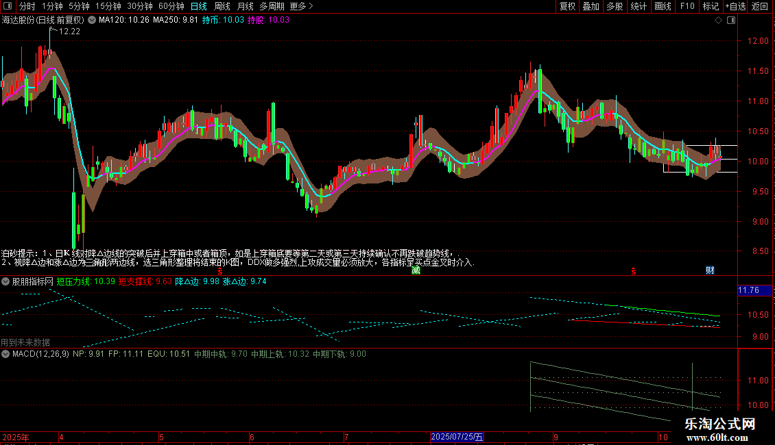 DRAWTEXT_FIX(ISLASTBAR,0,0.92,0,'泊砂提示:1、日K线对降△边线的突破后并上穿箱中或者箱顶,如是上穿箱底要等第二天或第三天持续确认不再跌破趋势线,.'),COLORWHITE;