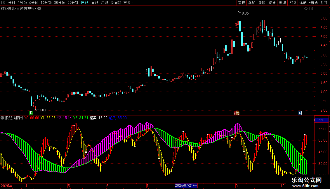 {粉红色柱子为主力控盘资金,粉红色柱子出现说明主力开始进场,粉红色柱子消失,说明主力出货完毕,粉红色柱子由长变短,说明主力小出货!}
