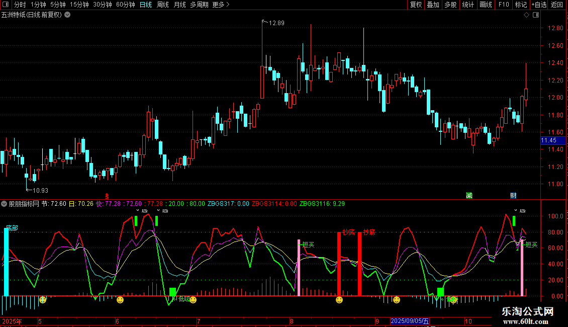 • 风险控制:指标在80附近设置“逃顶”信号(快线下穿90),及时提示超涨风险。
