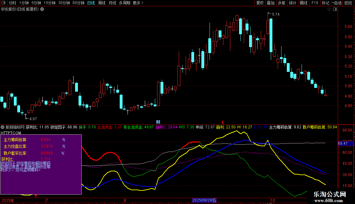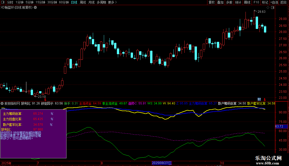 DRAWTEXT_FIX(CURRBARSCOUNT=1,0.01,0.30,0, '散户套牢比率:'),COLORYELLOW;