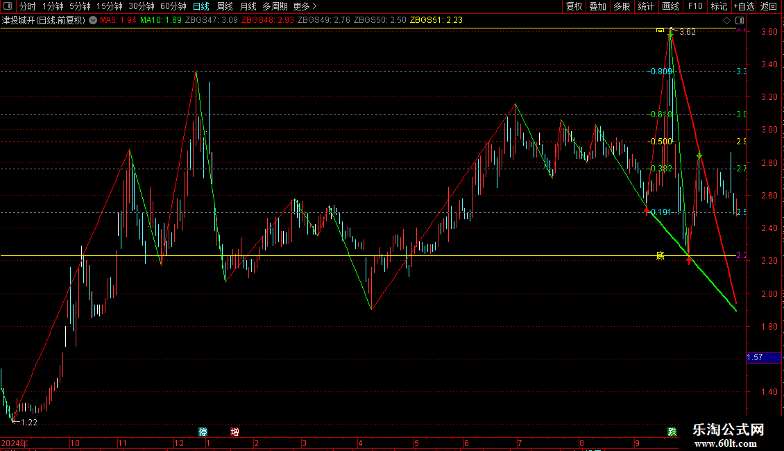 DRAWTEXT(ZBGS52 AND ZBGS47,ZBGS47,'-0.618-'),COLORGREEN;