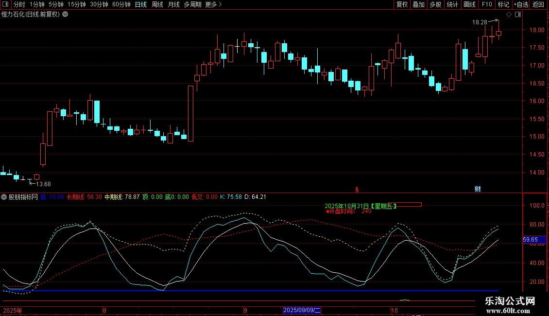 顶:(中期线<REF(中期线,1) AND REF(中期线,1)>80) AND (REF(短期线,1)>95 OR REF(短期线,2)>95 ) AND 长期线>60 AND 短期线<83.5