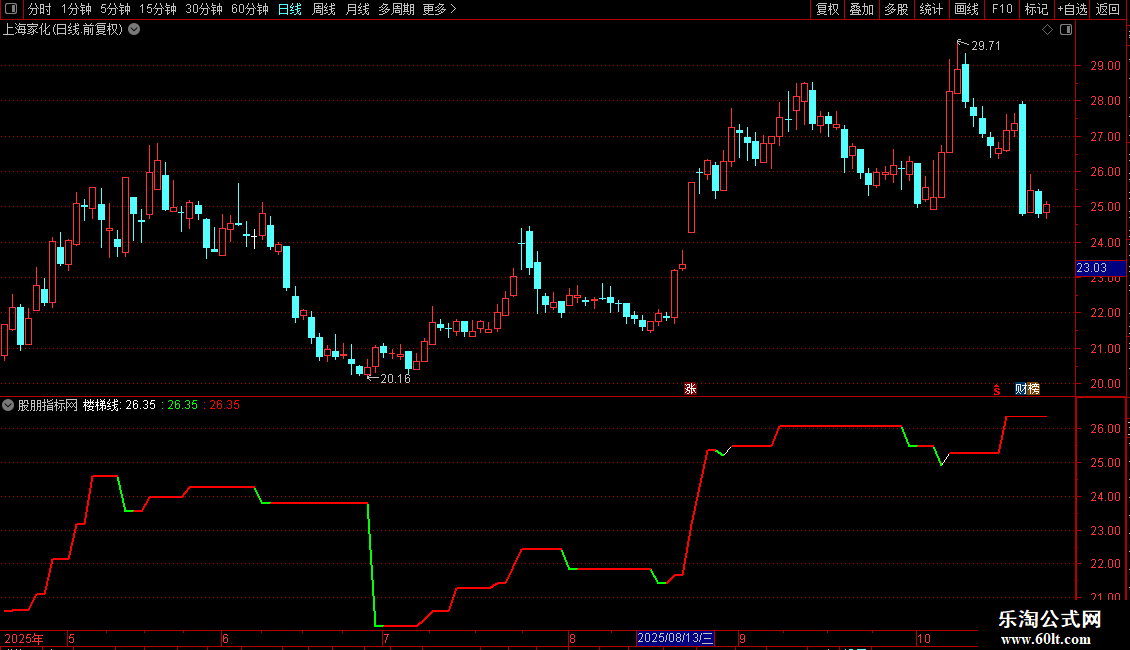 IF(楼梯线<=REF(楼梯线,1),楼梯线,DRAWNULL),COLORGREEN,LINETHICK2;