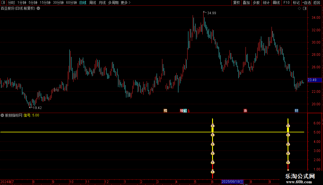 信号:IF(强势底分,6.5,5),COLORYELLOW,LINETHICK2;