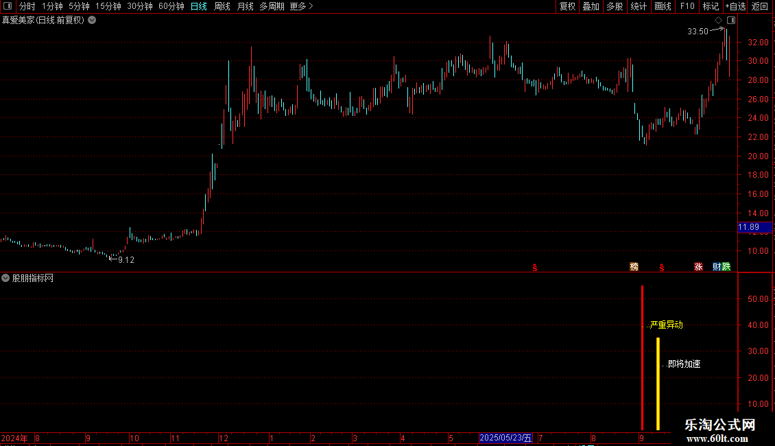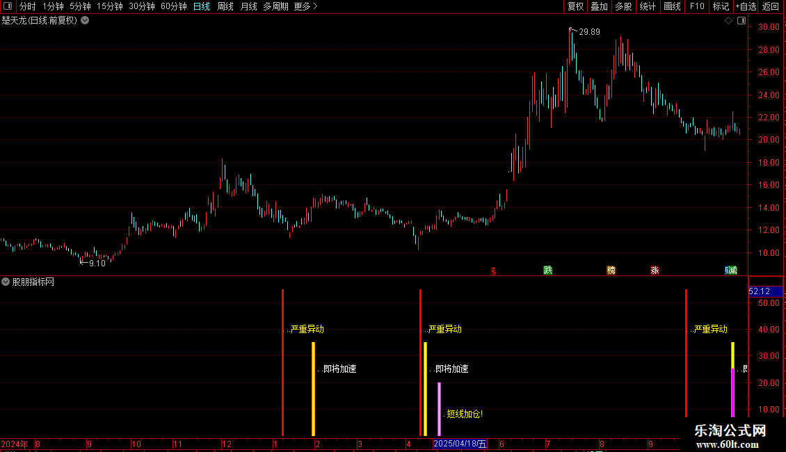 DRAWTEXT(FILTER(VAR1SJ,30)=1,25,'. . .即将加速')*HAN,COLORWHITE,LINETHICK5;
