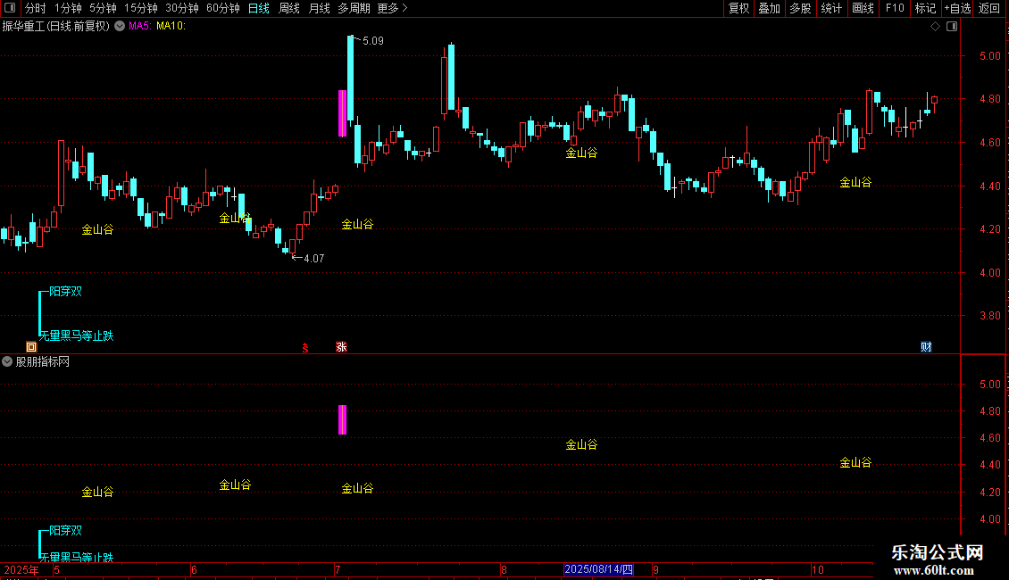 DRAWTEXT(山谷 AND MA(C,5)<MA(C,120),MA(C,30)-0.08,'银山谷'),COLORMAGENTA;