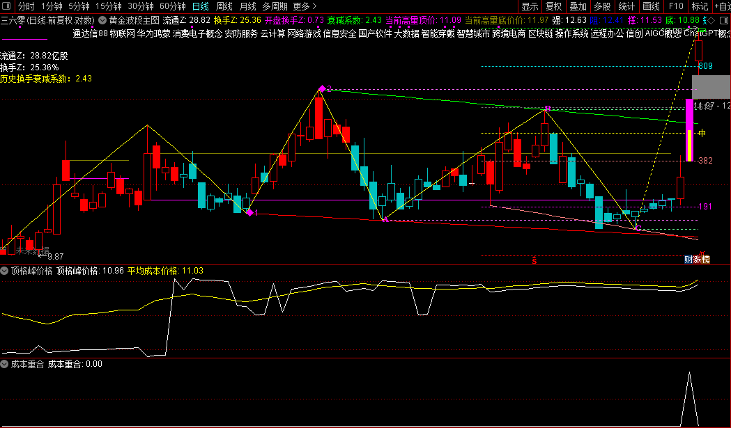 顶格筹码峰是筹码分布图中一种特殊形态,表现为某一价格区间筹码高度集中,形成几乎顶天立地的单峰形态,代表市场在该价位达成高度共识,是判断主力动向、捕捉强势股的重要技术指标。  其核心价值在于识别市场共识与主力控盘程度,是筹码在极小价格区间内集中换手”,本质是市场或主力在特定价位达成高度共识,会形成强大的支撑或压力。当股价位于顶格筹码峰下方时,该区域构成强压力位;当股价位于顶格筹码峰上方时,该区域转化为强支撑位。。在实战中,应结合 K 线形态、均线系统和市场环境综合判断,设置严格的风险控制机制。顶格筹码峰是 主力的底牌,看懂它,才能更好地跟随主力步伐,把握市场机会。
