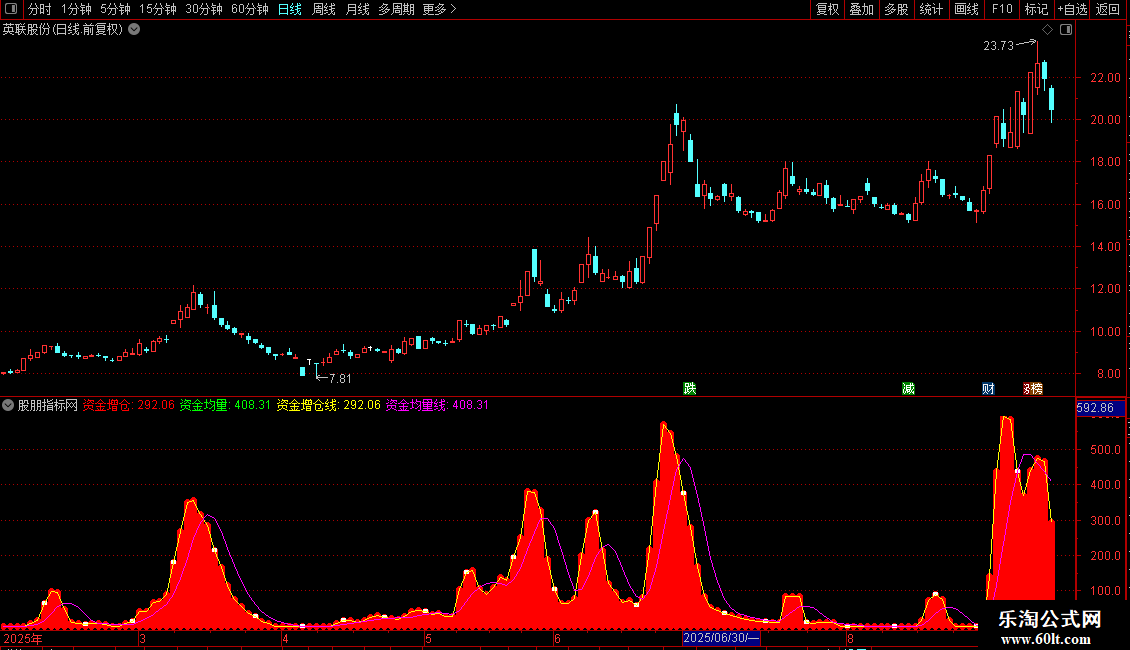 资金均量线:MA(DC,5),COLORMAGENTA;