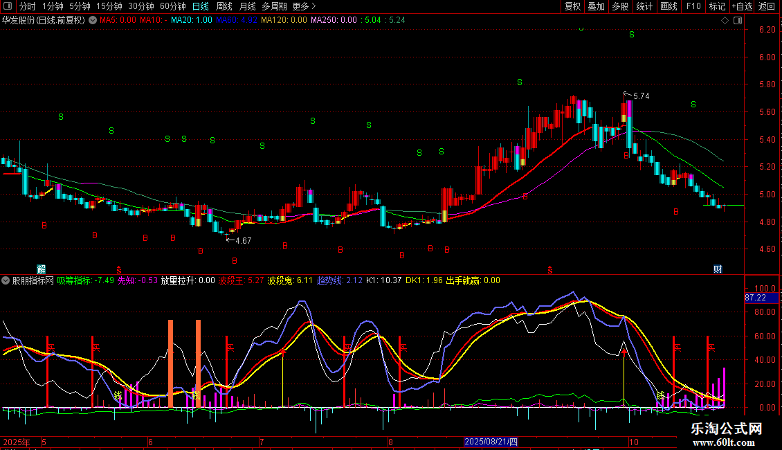 先知: (CLOSE-MA(CLOSE,5))/MA(CLOSE,5)*100, COLORFF00FF;