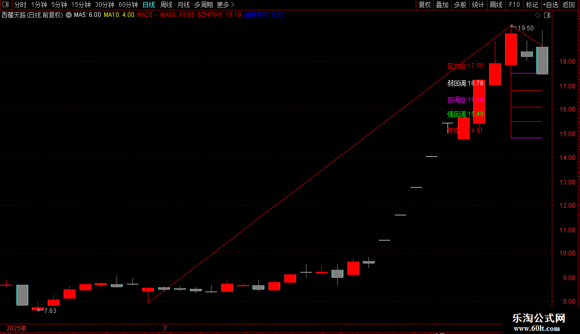 非常好用的 支撑压力分割工具,此指标可以明确的标注出支撑 压力位相关数据,左上方有文字提示,能帮助做判断。