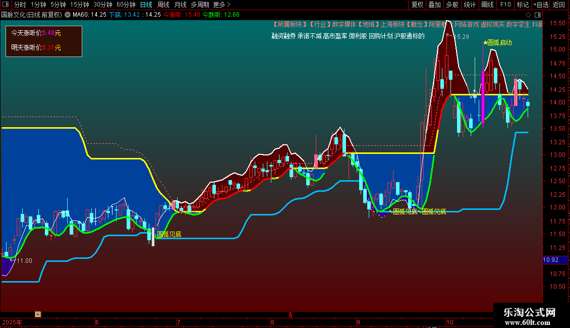 上顶:HHV(MA(MA(LOW,3),3),60)LINETHICK3,COLORYELLOW;