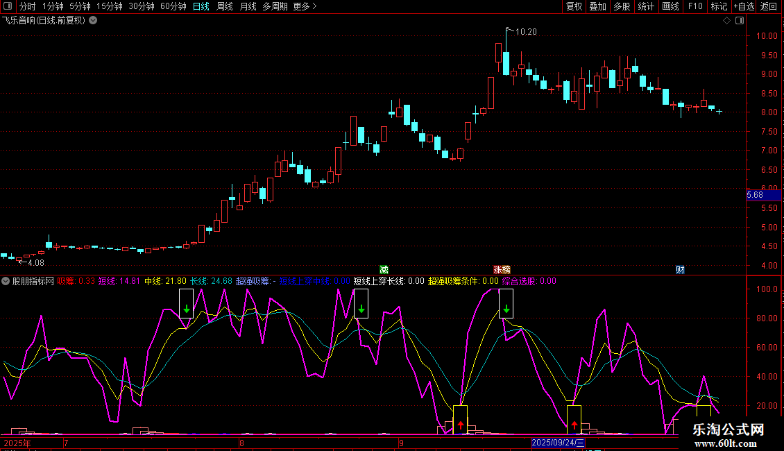 短线:(CLOSE-LLV(LOW,N))/(HHV(HIGH,N)-LLV(LOW,N))*100,COLORMAGENTA,LINETHICK2;