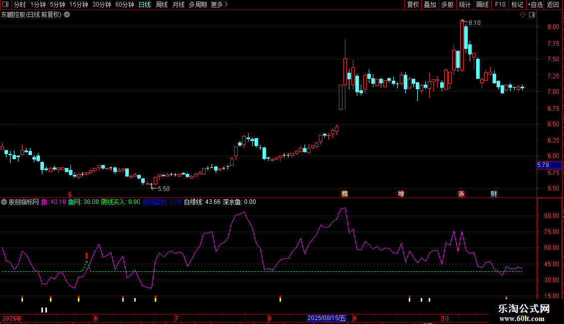 白绿线:SMA(鱼,7,1),LINETHICK1,COLORWHITE,NODRAW;