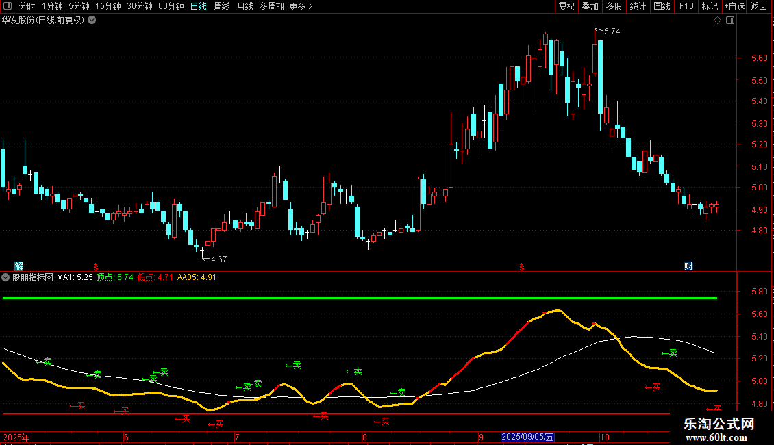 DRAWTEXT(REF(C,1)<D1 AND C>D1 AND D1<REF(D1,1),L*0.98, '←买'),COLORRED;