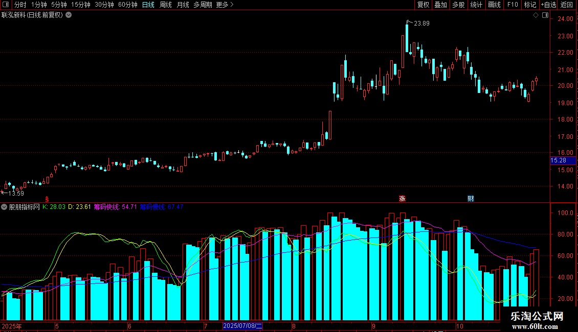 D: EMA(0.667*REF(K,1)+0.333*K,2),COLORYELLOW;