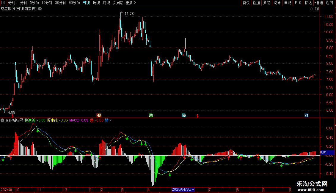 快速线:EMA(CLOSE,12) - EMA(CLOSE,26),COLOR33FF33,LINETHICK1;