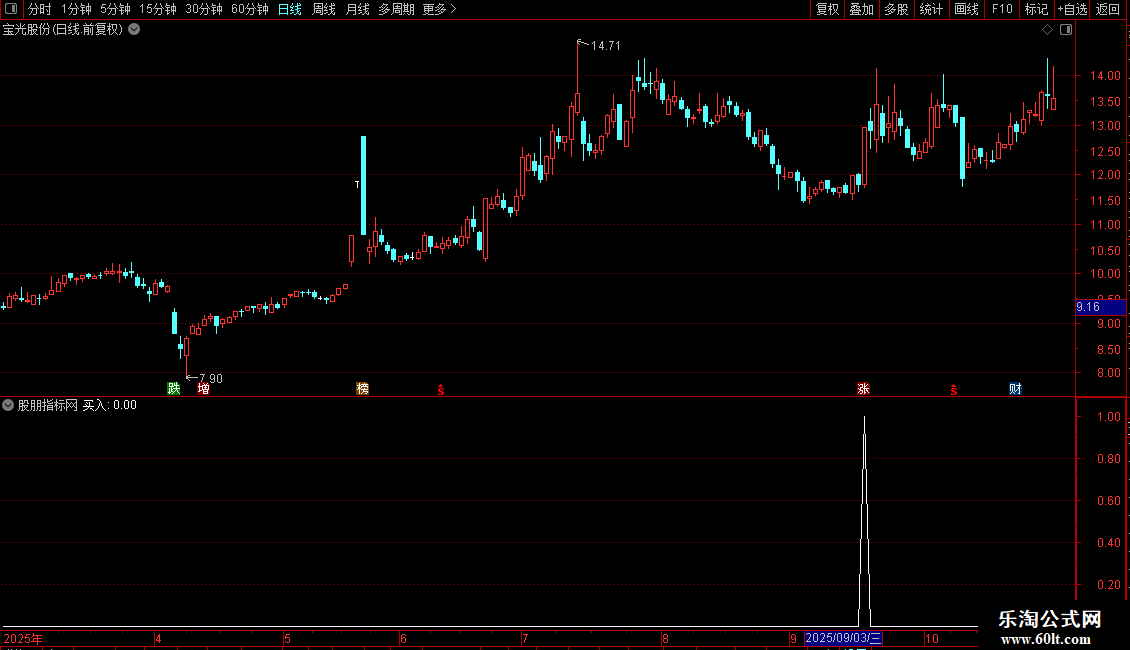 免责声明:乐淘公式网所有指标公式及文章由网络收集,不保障实时性和真实性, 仅供学习研究并不构成投资建议,请勿以此为依据进行股票交易,由此引起的投资亏损与本站无关。