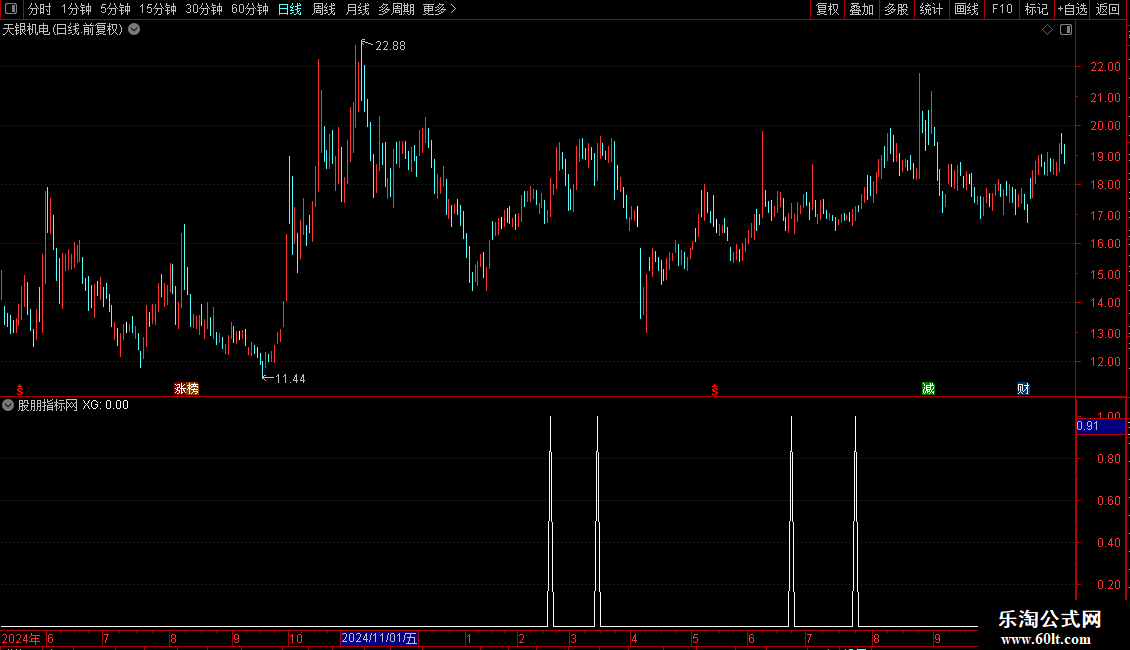 AA10:=MA(黑马捉妖,8),COLOR0000FF;