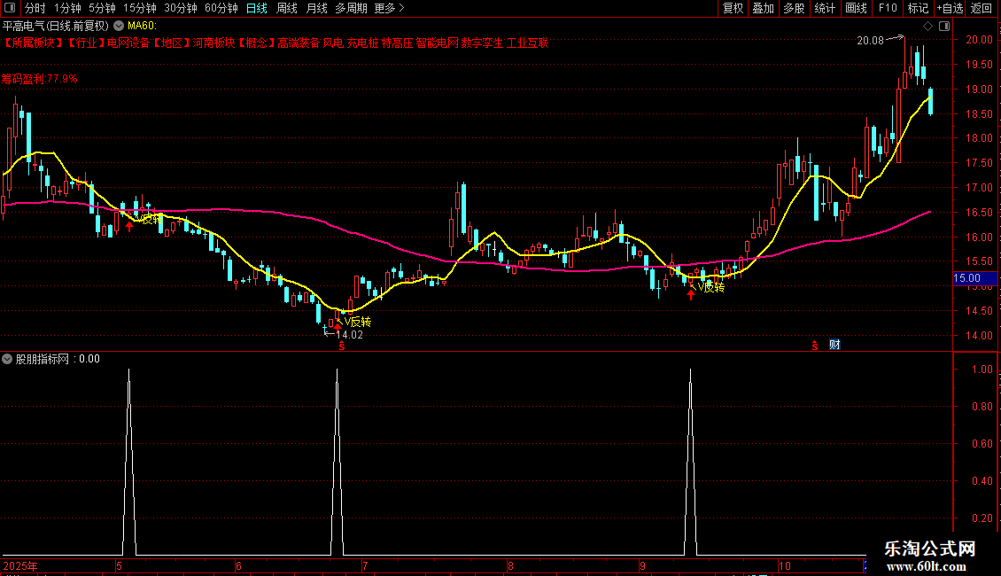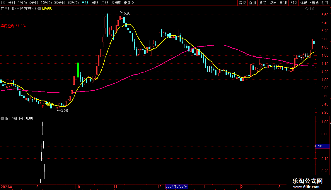 趋势线:MA(CLOSE,60),COLORLIMAGENTA LINETHICK2;