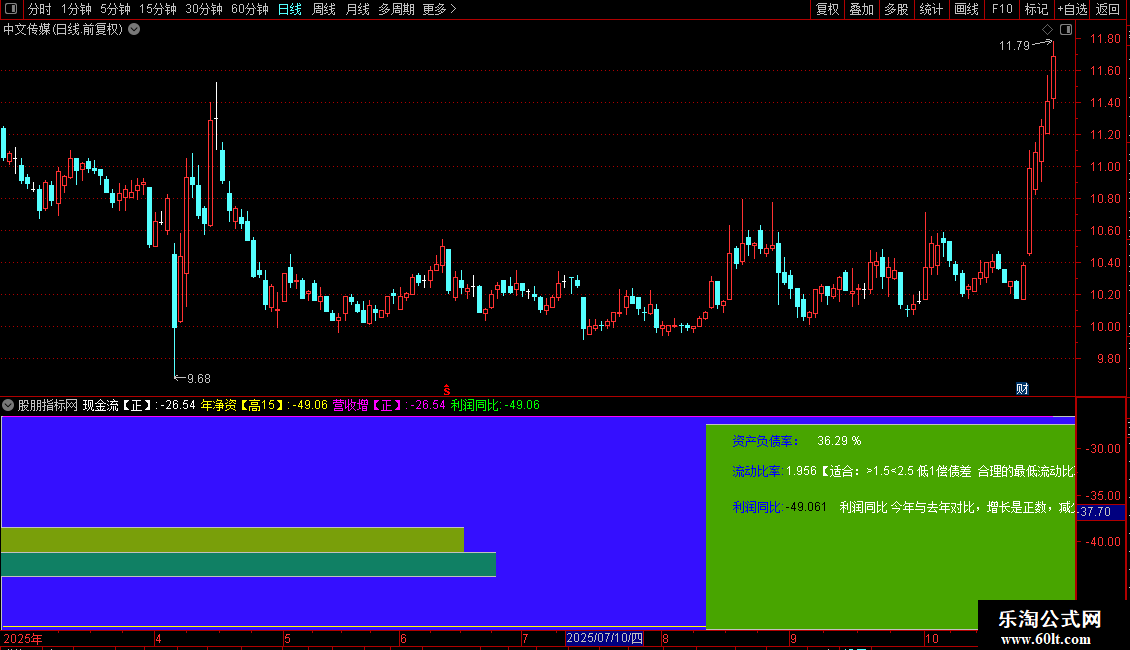 DRAWTEXT_FIX(负债率【低30】<30,0.26,0.568,0,'信号出现 符合 资产负债率小于30%');