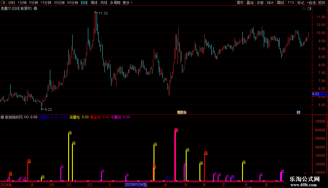 DRAWTEXT(地量柱,VOL+3000,'地'),COLORBLUE;