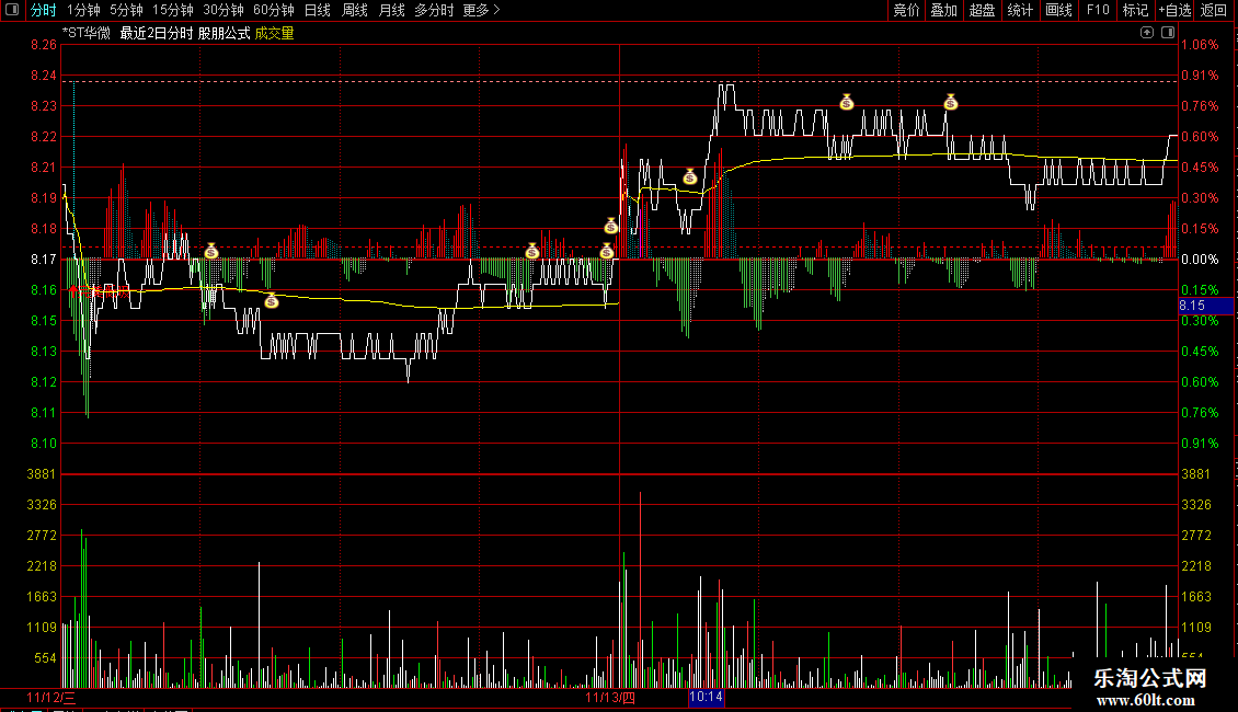 均线:=IF(BETWEEN(C/(SUM(AMOUNT,0)/SUM(vol*100,0)),1.05,0.95)=0,MA(C,0),(SUM(AMOUNT,0)/SUM(VOL*100,0))),COLORYELLOW,DOTLINE;