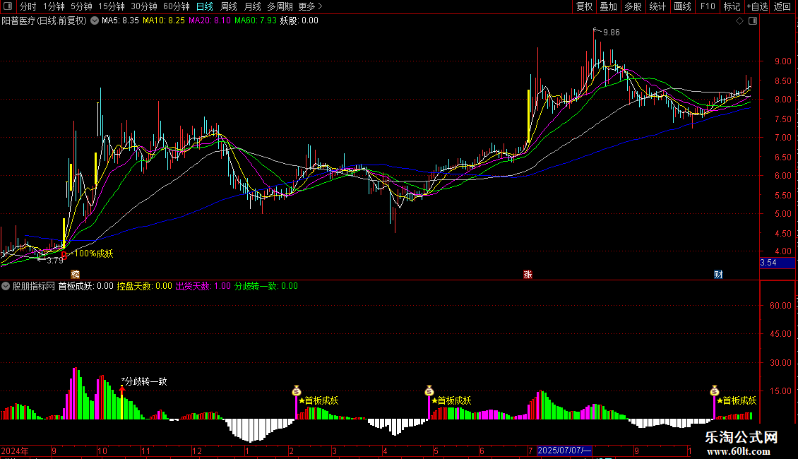 指标通过分析价格变化、筹码集中度和资金流向,识别主力控盘状态和趋势转折点。主要功能包括判断有无庄家控盘、监测主力出货行为、捕捉启动信号。操作策略为:当出现控盘增强且趋势向上时介入,主力出货时减仓,在分歧转一致和首板启动时择机跟进。