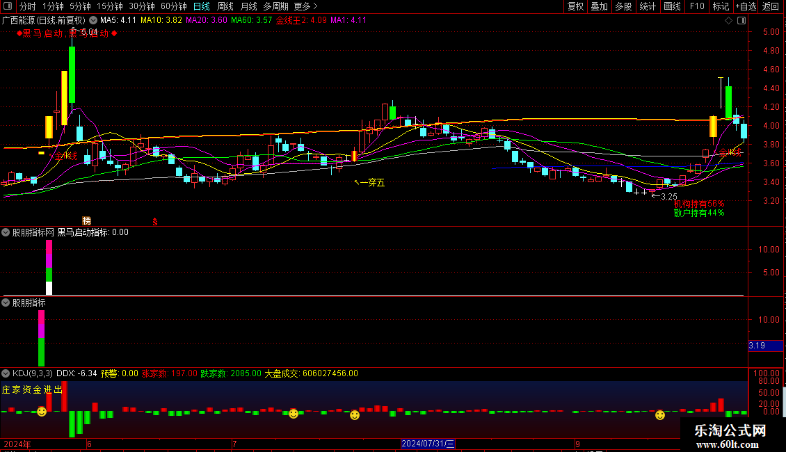 DRAWTEXT(起爆 AND VARR6 AND VASS3,L*0.97,'↖黑马一号'),COLORYELLOW;