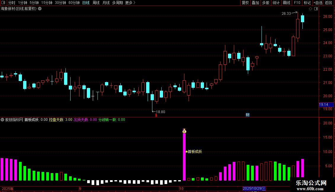 首板成妖:IF(A10,6,0)AND 做多 ,LINETHICK0,COLORYELLOW;