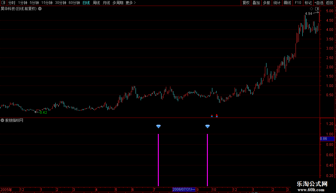 XG:=CROSS(CLOSE,MA(CLOSE,5)) AND MA(CLOSE,5)<A7 AND A3 AND NOT(CLOSE=OPEN) AND NOT(DYNAINFO(4)=0);