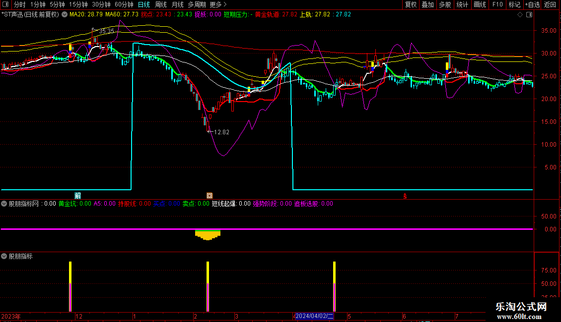黄金坑:IF(MA((CLOSE-MA(CLOSE,28))/MA(CLOSE,28),3)*100<(-15),MA((CLOSE-MA(CLOSE,28))/MA(CLOSE,28),3)*100,0)*X_4,COLOR00F600,LINETHICK2;