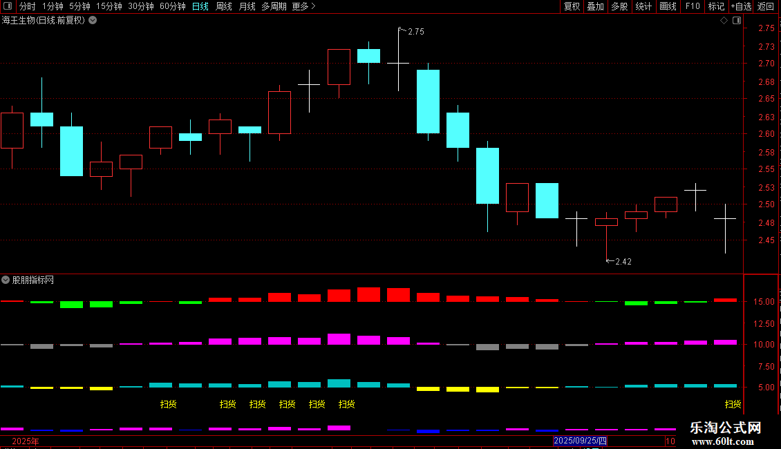 指标通过分析股价波动和成交量,计算不同时间周期内的资金流向变化,用柱状图直观展示多空力量对比。当短期(1天、3天、5天、10天)资金流向同时转为正值时,会显示“扫货”信号,提示可能的市场机会。