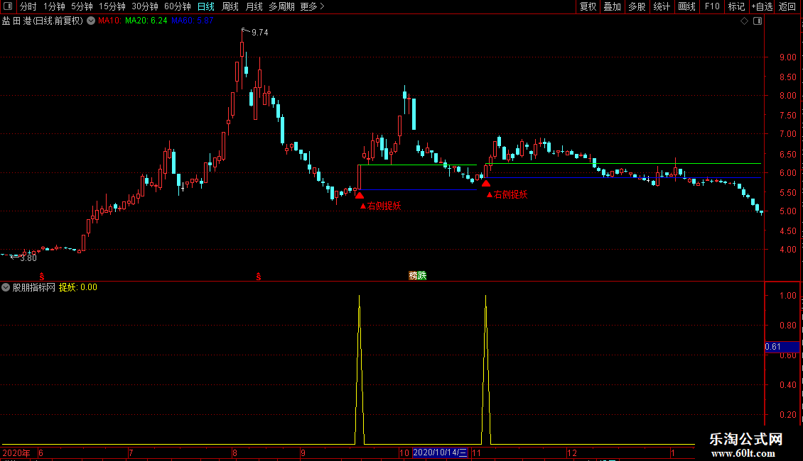 DRAWTEXT(TDZB7,LOW-0.075*LOW,'▲右侧捉妖'),COLORRED;